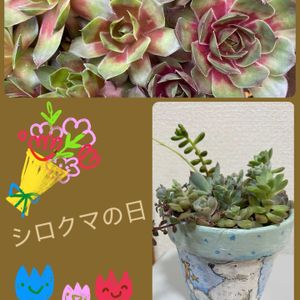しろくま🐻❄️のリメ鉢で、年に一度のシロクマ🐻❄️の日に参加します😊 ↘️秋に作ってから、ずっと室内(窓際)に置いていたので、みどりんな上に徒長してしまった💦 ⬆️ もりもりになったセンペルサンドロップ😊 春は、センペルも個性的で、楽しいです💕😊 この子も成長スイッチ入ったようです💕