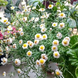 窓辺の花かんざしが旺盛です🌼🌼🌼🌼🌼 沢山咲いてふわ〜っと広がっていますが、まだ蕾もあります😄 いつ見てもホントにかわいい💞