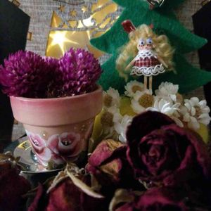 こんばんは マルちゃんAtorie 20周年おめでとうございました プレ企画にて可愛い 鉢と夢ちゃんdoll 頂きました 薔薇、千日紅、花かんざしのドライで投稿しました 有難うございました