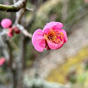 おはようございます😃 紅梅が一輪🌸 紅梅がなかなか開花しませんね☺️ 今年はやっぱり寒いのかなあ❄️