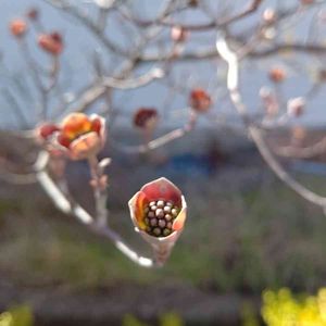 職場のハナミヅキ(赤) 春待ち芽から花芽に 開いてきました