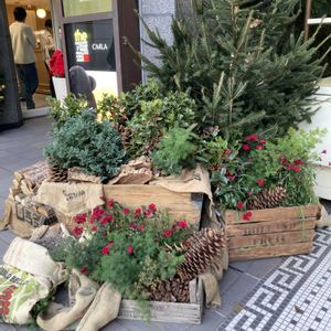 店先の素敵な飾り✳️ 大きな松ぼっくりに目が留まりました✨ 3️⃣4️⃣ 「光のリングとプリズムが輝くクリスマスツリー」 キラキラと素敵でした🎄 (表参道ヒルズ)