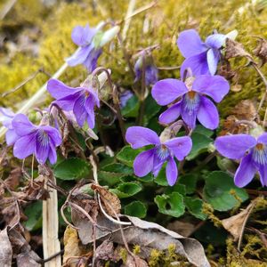 スミレサイシンです。 自然大好き派😘です。 北陸帰省(4/21〜)写真を整理していたら出し忘れがありました😅のでアップ⤴️します。杉林の中で開花し始めていました。このスミレは葉っぱが開くのが花より遅れる傾向にありまだ十分に開ききっていません。開いている葉っぱも一部途中でシワシワです😊。花だけだと判別が難しいですね😅。 皆さんが沢山上げているアメリカスミレサイシンほど綺麗ではありませんが、田舎の春の足元を照らしていました😊。