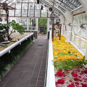 植物園温室で花手水 満開🌼🌻🌹💙