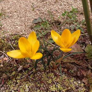 🌺バラの株元にクロッカスの花が咲いています。春先の僅かな時間だけ起きて又眠りにつくのかな?何か凄い生活してますね。👍