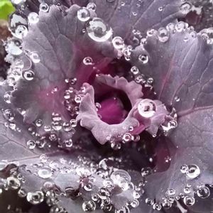 おはようございます 😊雨粒シリーズNo.697 今日は葉牡丹💜 シックな色の葉牡丹 🏷️青い葉っぱマニア