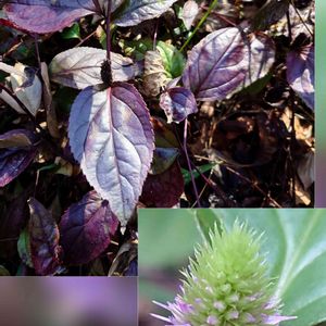 緑色のトラノオスズカケの葉🌿が紅葉して紫色になりました、裏は赤いです💜🌿 トラノオスズカケの花は日本固有種で絶滅危惧種に指定されています。 四国から九州に分布していますが、自然教育園には平賀源内が持って来たと言われている貴重な植物です。 オオバコ科 スズカケ属