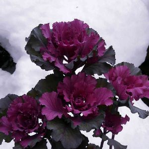 玄関前に置いてた葉牡丹に雪がかかり 白い花が咲いたように綺麗です🌸💮🌸💮☘️