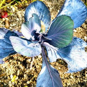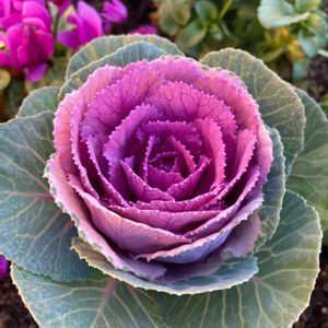 おはようございます😊🌄 🏷美しく青きドヨウ 🏷青い葉っぱマニア 紫色のハボタンが綺麗です💜🌿 アブラナ科 アブラナ属