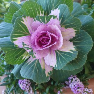 🏷青い葉っぱマニア 🏷毎月8日は鉢の日 🏷8日は葉っぱの発表会 まるでお花のような葉牡丹の寄せ植えです💮💜💚(*ฅ́˘ฅ̀*)♡
