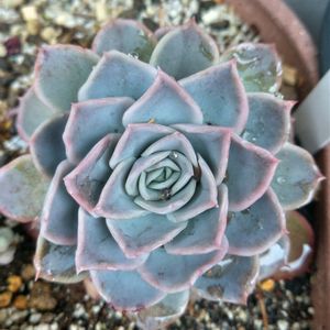 🏷️ド真ん中の日 エケベリア ジョセリンズジョイ やっぱり水色にピンクの縁取りは好き☺️🎶 雨が降ってて安心してたら、南側は降り込まずに空っから、焦って水を遣る私😅💦💦 🏷️青い多肉マニア