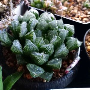 ハオルチア「天津三角窓オブツーサ」 子株がよく出ます👶 質問✋ 皆さんみたいにハオルチアをパツパツに育てたいのですが、コツは何でしょうか?