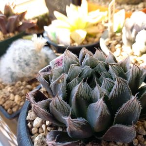 ハオルチア「ヘルバセア」「紫翠」「レディ」「天津三角窓オブツーサ」 どれも3cmくらいのミニサイズです。だからこそ、より可愛い❤️