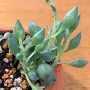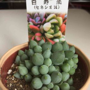 お店の方によると、なかなか入荷しない多肉植物で、水と日光が足りてないので細長くなってますが、本当はもっとまんまるで、グリーンネックレスとかと比べると、スジスジなんです お店の方は、名前を忘れてしまったらしく(-ω-;) どなたか、名前知りませんか?。・゚・(ノД`)・゚・。 ありがとうございます‼️ 『白寿楽』でした‼️