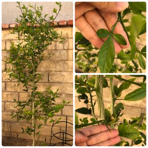 中古で買った家の庭に生えている謎の木です。高さは1.5メーター位でまだまだ大きくなりそうです。幹は1番太いところで直径1.5センチ位でしょうか。幹や枝に結構しっかりした棘が生えていて、葉っぱが3つでセットみたいな感じです。ご存知の方いたら教えてください。