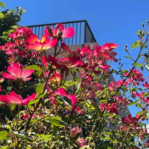 雨上がりの青空にカクテル❤️ 2番花が沢山咲いて来ました😍🌹 めっちゃ 上の方なんですけど・・・😆 🏷 真っ赤な火曜日 🏷 あっ火曜日 🏷 バラの香曜日