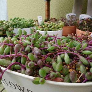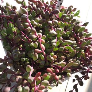 ルビーネックレス2種。 2種? どちらもオマケ苗で名前がない状況で頂きました。 わーい、ルビネだ♪と思って一緒に植え付けたけど、どう見ても種類が違う。 しかも最近、ルビネによく似た紫麗玉(シレイギョク)なるものがあることも知り、益々分かりません。 もう少し成長したらまた変わってくるかな? 最終的に、かわいいからなんでもいいや☺️に落ち着くのは多肉あるあるだと思ってます😄