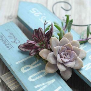 多肉棚の寄せ植えをアップで💕 クロスケかな? 名前が付いてなかったので分からない~~💧 ルビネは細長い子と丸い子と2種類🎶 リメ缶はザラザラ仕上げでビンゴカードのラベルが気に入ってます♡(´˘`๑)