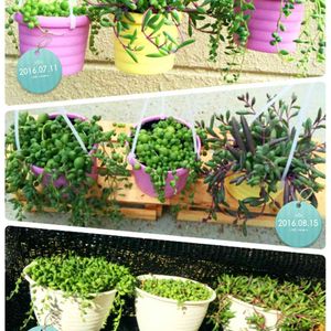うちのネックレス達。 グリネはチョッキンして増やした子。ルビネは友達のところから来た子。斑入りグリネは、なかなか増えてくれないけど、みんなお気に入りです☆