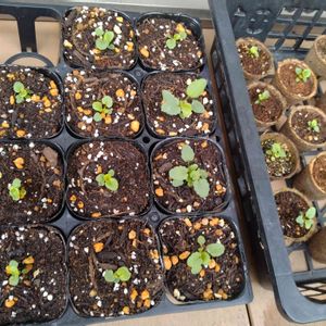 今、私が一番癒やされるのがこちら✨ パンビオのポット上げ😆💕 ジフィーポットから少し根が出てきたら、9cmポットに植え替えています。 ちょっと大きいのは、確か2週間くらい前にポット上げしたものかな? 品種はごちゃまぜなので、何が咲くのか、てか咲くまで育つのかわかりませんが、かわいくて成長が嬉しくて癒やされます🎶