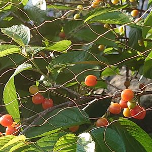 さくらんぼ、中々赤くならないと思っていたが、鳥が来て食べているのを発見し、納得しました。😅 脚立を持ち込んで、少しですが取って、近所の方々に、あげました ✌️😊