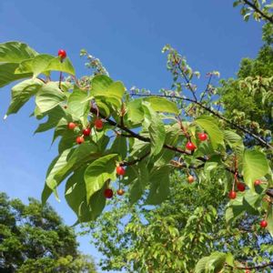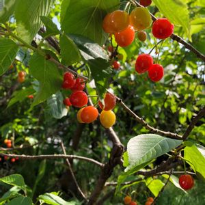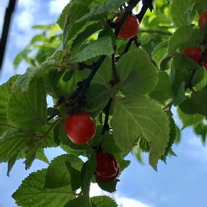 5年前に庭に植えたさくらんぼの🍒木が、今年は、たくさん実をつけました。 赤くなるのが楽しみです。