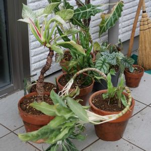 芋類の植え替え一弾 少し雨が降る 寒くなると弱いサトイモ科から植え替えを始める 外に出してる間になんかアグラオネマがぐにゃぐにゃした あとで支柱を立てねば 昼に一時雨が降ったので今日はここまで まだ大鉢が結構ある ベランダから家に入れるのに植え替えをするのだけど 生育や土の劣化に加えゲジが鉢に入ってる事が多いんが 主な理由の一つ ついでに株ごと洗って葉についてる虫も流している まあそれでも多少は残るけどその辺は許容 晴れ間を見てボチボチやっていかねば 温度が下がって衣替えもせねばと焦る