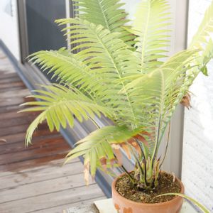 取り込み中のザミア なんか不自然に暖かい1日 取り込み前から花がついていたのだけど 見れば大きく焼きもろこしのようになっていた 階段室でライトに当てていて 適当に水やりしてるだけで冬は放置 夏は屋上で水やりだけして放置と とにかくほったらかしである 育てる意味があるのかは謎 毎朝の作業でプリムラの鉢を表に出していたが 異様に暖かく春のような気温だった あったかいと過ごしやすいが不気味である でも暖かいうちに庭作業をやってしまおう 厚着しないでいいから引っかからずに済む 極寒の時期に観葉の花が咲き 外も暖かい謎の気候