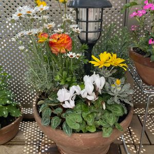 今日は左上の黄色いお花、ムルチコーレを購入し、元からある寄せ植えに植え込みました🤗可愛い*.(๓´͈ ˘ `͈๓).* 手前のラナンキュラスもそろそろ咲きそうでワクワクが止まらない〜(ㅅ˙³˙)♡