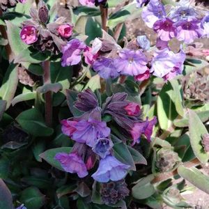 プルモナリア・ブルーエンサイが咲いてきました。 雪解けが直後、土の中から芽が出てきたばかりに蕾が膨らみながらあがってきて、花が咲き出します。