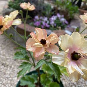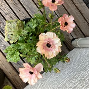 こんにちは〜 本日2枚目の投稿です。 庭の花も続々と咲き始めて投稿が追い付きそうもないので、今日から以前のように2枚づつ投稿しようと思ってます。ただ、以前は、朝投稿と夜投稿に分けていましたが、今回はいっぺんに投稿しようと思ってます。先程載せた投稿も見て頂けると嬉しいです。 今日の2枚目投稿picは、今年お迎えしたラナンキュラス ラックス ヘスティア。2月13日以来の投稿です。(以前載せた投稿は、写真の中のタグから見れます) あれから、暖かくなってどんどん咲き始めていたんですが、花が開き過ぎて、あまり写真にも美しく写らず、鉢も大きめに植え替えたら、萎れてしまい…以前根腐れをさせてしまったからとパーライトやバーミキュライトを入れすぎて逆に水はけを良くしすぎたと思ったのが間違いと気付き、再度植え替えたら、復活。 咲き過ぎたせいで枝を切り取り過ぎてしまったし、花は開いてしまうけど、色合いはピーチっぽくて可愛かったので、載せることにしました。 色合いが本当に可愛い(∩´∀`∩)💕 これもそのまま年越しして、丈夫な苗になるといいな( ˊᵕˋ*) 他の我が家の8種類のラックスさんは、全て無事冬越しをして蕾が付き始めました。花が咲いたら順番に載せて行きますね。 ☆今日の投稿1枚目にプルモナリア ブルーエンサインを載せています。良かったら見てみて下さいね。