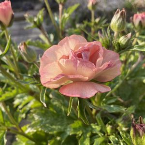 2年目ラナンキュラスラックスヘスティア、たくさん咲き始めました✨ アンティークなピンクベージュカラーがおしゃれです🧡 このボリュームになってしまうと8号鉢だとすぐ水切れするかも…😅 近日中に10号鉢にお引越しかなぁ…💦
