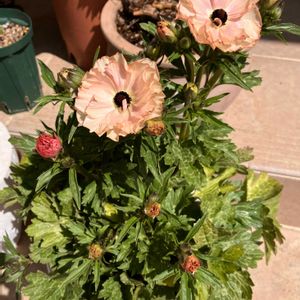 夏越しした鉢植えのラナンキュラスたち✨ 株分けしたものもあり花数少なめですが咲いてきています☺️