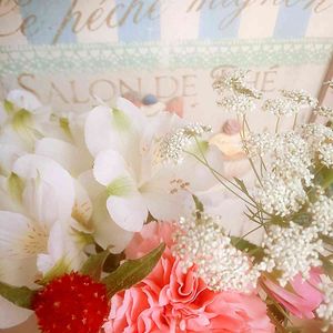 昨日UPした花束の一部分です˗ˋˏ ♡ ˎˊ˗ この白いお花の名前がどうしても思い出せず( ˊᵕˋ ;)、、 どなたか教えて下さると嬉しいです𓂃܀𑁍 明日は息子の運動会だけど、、雨で延期かな〰( ˃ ˂ )☂️