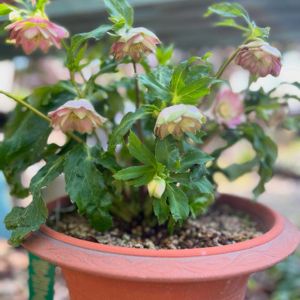 一昨年からの 曽田園芸さんのクリスマスローズ 利休 力強く開花中 💚ᩚ 手持ち開花 25-23 ( お迎え 23-49 )