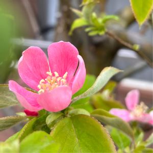 カリンさんのお花🌸かわいい、かわいいピンク💕のお花さんの後はかわいい実がつきます、毎日少しずつ大きくなります💕カリンさんは喉に良いのでカリンシロップ作ります💕🤗
