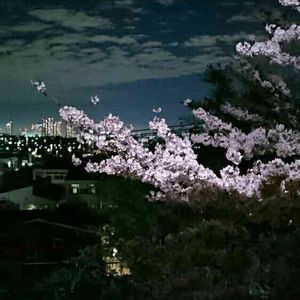 横浜もやっと満開になりました。 リビングからの景色です。 ありがたい事に桜はベランダに枝が入り込んんでしまう位間近で花見が出来ます。