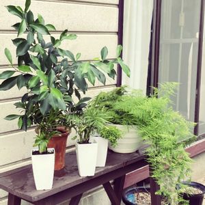 ☘️ ガジュマル アスパラガス etc☘️ おはようございます♪ 今年植替えをしたガジュマルは 大きくなって葉を広げています アスパラガスも毎年モリモリと 葉を枝垂れさせて離れの玄関先 を緑色で彩ってくれています🌿 小さな観葉植物たちも2年目の 夏を楽しんでいる様です🌱 今日も暑い一日になりそうです💦