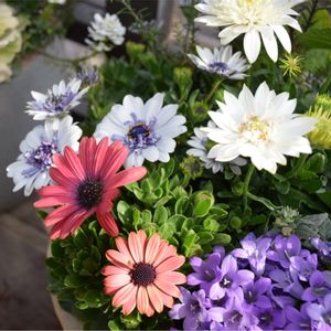 週末は気温が上がり、春の陽気でした🌸 お散歩に行った近くの公園では噴水が涼しげに感じられました⛲✨ 春の寄せ植え作りました🌿 可愛いお色のオステオスペルマムに蕾が沢山ついていて、これから楽しみです~💕(///∇///)