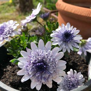オステオスペルマム 3Dシルバー🌼 ゲブラさんのシルバーナイトには出会えなさそうだったので、偶然出会った似た感じのこの子をお迎えしました☺️ 沢山咲いてくれるといいなぁ💖 明日ゲブラさんのインスタライブがあり、『ダブルオステオスペルマムの楽しみ方』というテーマだそうなので、勉強しようと思います😆