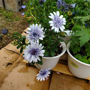 今日は雨です☔️ 昨日のうちに待機苗を全て植え付けて、植え替えなども終わらせたので、気分はスッキリです✨ オステオスペルマム 3Dシルバー🌼 なかなか一気に揃っては咲いてくれませんが、次から次へと少しずつ咲いています😊 まだまだゆっくり楽しめそうです♪