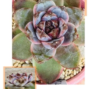 【エケベリア・ナンバーワン☝️】 去年の秋、お迎えした時はかわいらしいお姿でしたのよ。 まん中がブルーベリー色で🫐✨ どんな風に大きくなるか楽しみでしたのに。 なんか😳…結構イカつい⁉️ 🍏