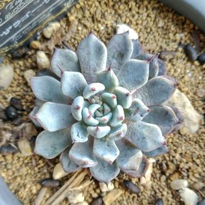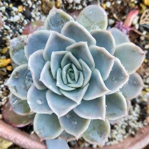 今日の最後の投稿は、☝️に決めた‼️ 🏷️水曜日は水色 だから、中心部が水色っぽいエケベリア、ダスティ・ローズさんでね。 去年購入、最初は小さかったので、エケベリア髙砂の翁さんと同居してたけど、どちらも大きくなってすぐに別居。 この子は今や手のひらサイズを超えてます。2度の花も全く余裕で、葉っぱ展開中😁🎶 髙砂の翁さんは、明日ってことで、お休みなさい。 また明日、楽しみましょうね‼️ 🥱😪😴zzz