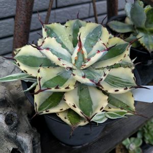👑アガベ スーパークラウン👑 冬前に子株が出てきてしまってます😅 斑入りということもあり、冬には弱いのでそろそろ不織布で防寒が必要🥶
