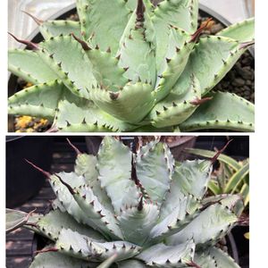 アガベ 八荒雷神 Agave potatorum × macroacantha 上 6月 下 12月 半年で更にカッコよく変わってきました👍