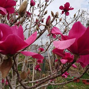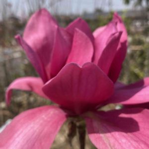 《モクレン〜マグノリアバルカン》 バルカンは、キャンベリイとシモクレンの交配種で、ニュージーランドで作出された品種です🤭 花色は鮮やかなワインレッドで、目を引きます🌼🌸 生育旺盛で若木のうちから開花します🤭