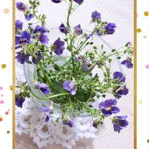 ネメシア ミッドナイトブルー💙 半分くらいに切り戻しました でも、何だかまだ可愛くて、捨てられなくて、飾りました😍💙 育て方見て半分に切り戻したけど、頑張ってくれるかな〜😅 心配です💦