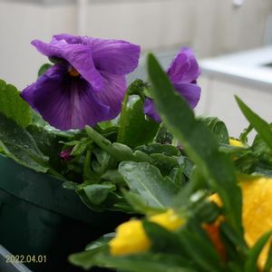 GSの皆さん おはようございます 雨の金曜日 もうじき止むかな パシオミックス 黄色 オレンジ色ときて 三人目は 紫さんでした! まだ小さな苗があるんですよ 何色でしょう