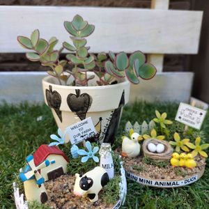 🏷牛の日…🐮 いつものミニ牧場にアヒルちゃんも増えました😆 花ねずみの鉢にはミセバヤ🌿 赤い縁取りのミセバヤは名前なんだったかな〜😅 調べてきました〜! ✨✨越中ミセバヤ✨ 多肉さんの不思議な色合いは、いつもワクワクしちゃいますね〜((o(´∀`)o))ワクワク💕