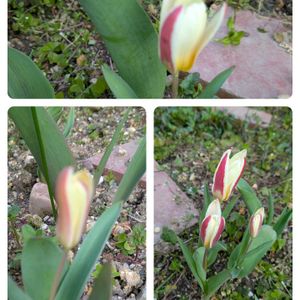 華奢な花達 ①原種のチューリップ❤️💛今年も見る事が出来ました。3.4年経過 ②ペチュニアジュリエットモダンピンク💕 3年目で茎も折れそうな位ですが、又ニュアンスカラーを見せてくれました。 ③矢車草ピンク🩷は、溢れ種からの開花。咲くまで何色かわからない。 ④ネモフィラマキュラータ🤍💜 ブルーは有名になりましたが、この子も粋な雰囲気